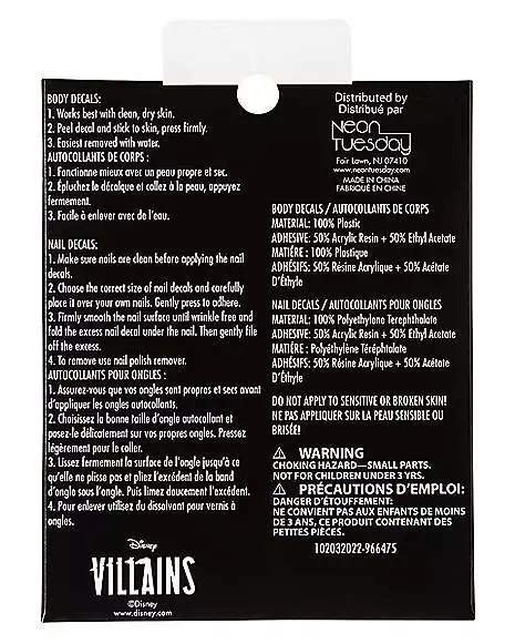 Complete your Ursula look with this fashion decals. Coming complete with 5 body decals, and 14 nails stickers, you’ll be sure to complete your Disney Villains costume.
